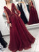 Long Sleeves V-Neck Sweep/Brush Train With Applique Tulle Dresses
