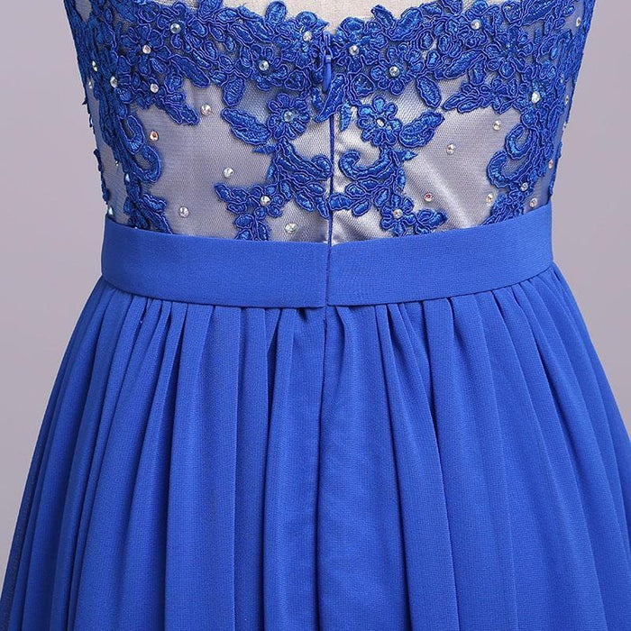 Elegant Strapless Chiffon Evening with Lace Appliques Long Prom Dress