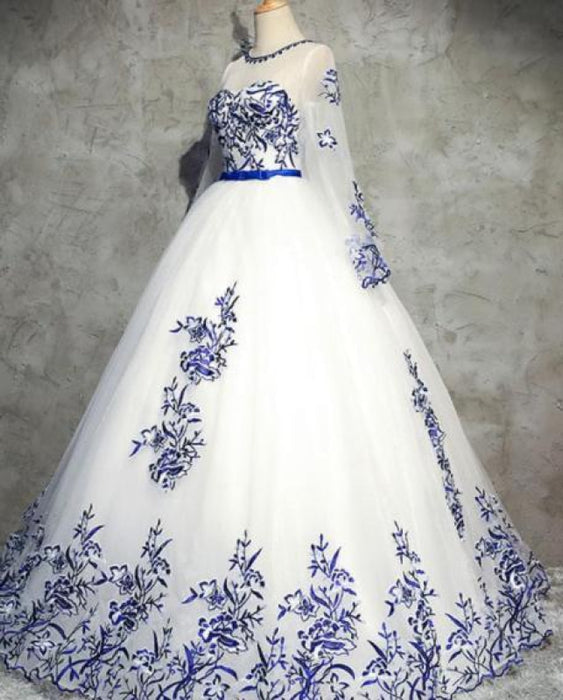 Eye-catching Sleek Eye-catching Ivory Sleeve Tulle Prom with Appliques Puffy Appliqued Long Evening Dress