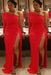 Marvelous Excellent Elegant Sheath Long Sleeves One Shoulder Split Floor Length Prom Sexy Red Evening Dress