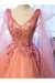 V-Neck Appliques Beading Floor-Length Quinceanera Ball Gown Tulle Prom Dress