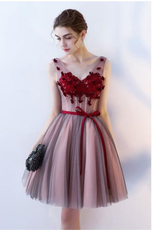 Simple A-line Red Sleeveless Homecoming Short Prom Party Dresses