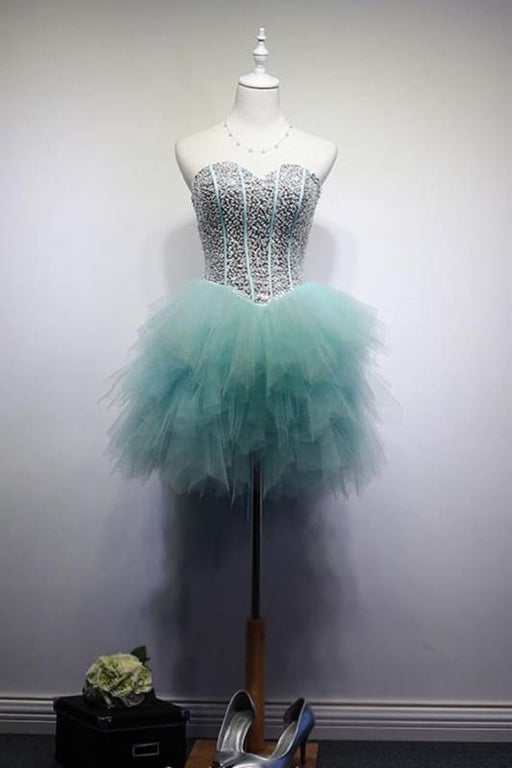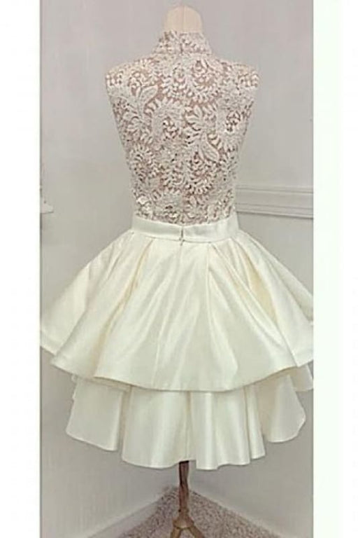 Two Piece High Neck Sleeveless Tiered Homecoming Dresses with Beads A-line Party Dress