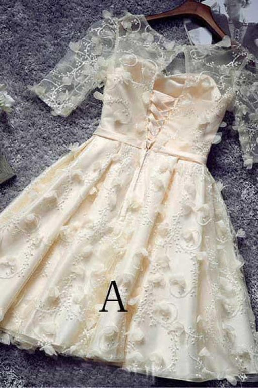 Fashion High-low Round Neck Lace Short Prom Dress with Sleeves for Teens