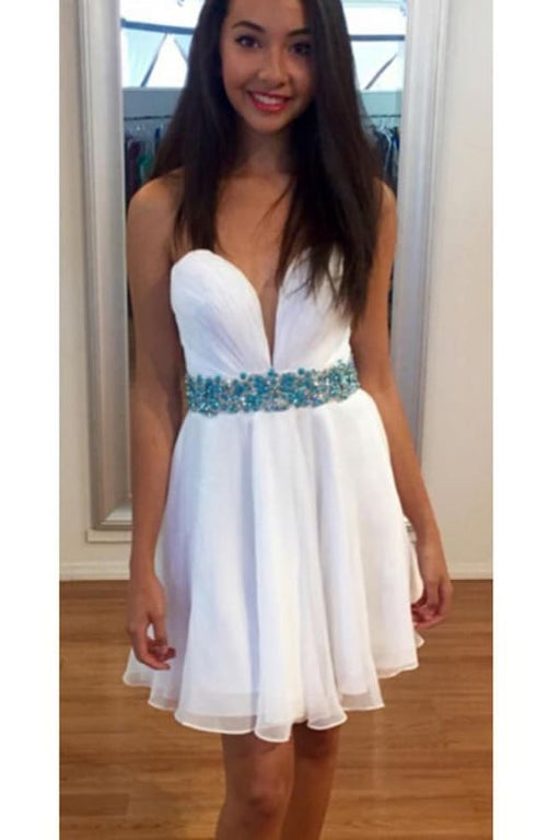Sexy Asymmetrical Deep V-Neck Halter Short Homecoming Mini White Dress