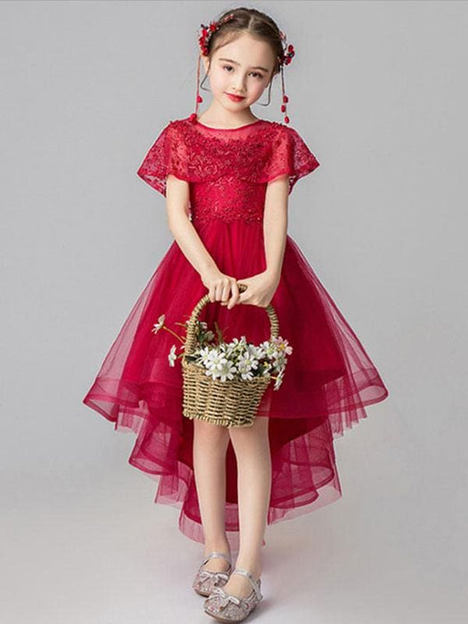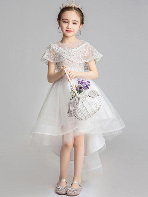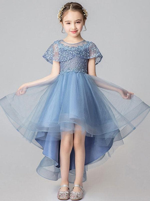 Asymmetrical Tulle Sleeveless Flower Girl Dresses Princess Embroidered Kids Party Dresses