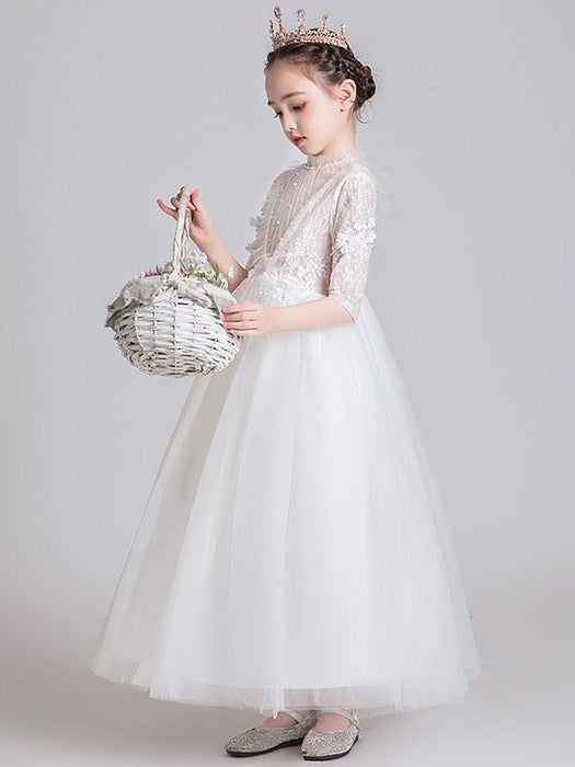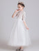 Half Sleeves White Flower Girl Dresses Jewel Neck Ankle-Length Princess Dress Kids Formal Dresses