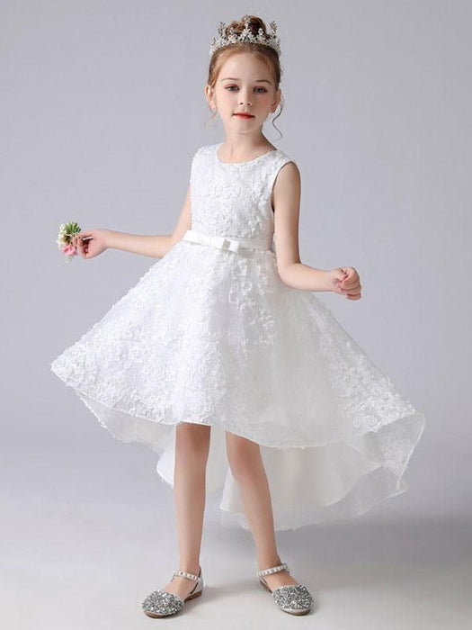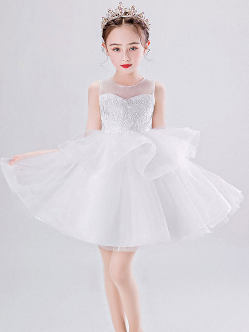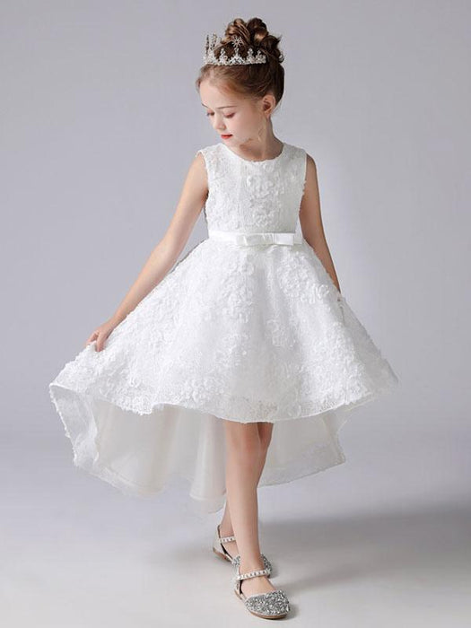 Short Princess Dress for Kids White Sleeveless Flower Girl Dresses Party Dresses Jewel Neck with Bows