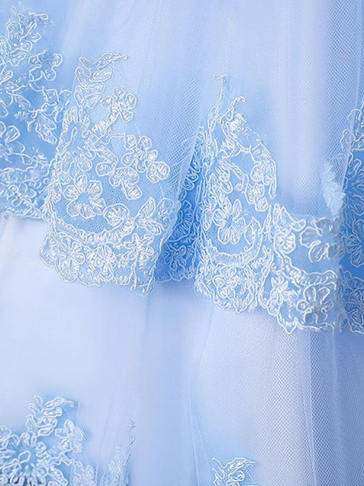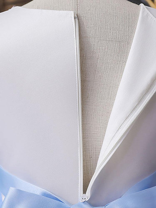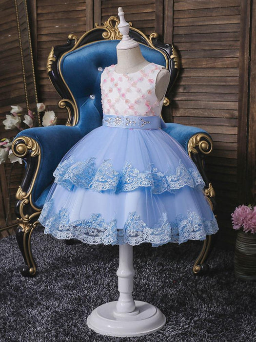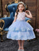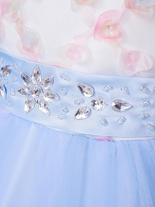 Sleeveless Tulle Embroidered Kids Party Dresses Light Blue Flower Girl Dresses
