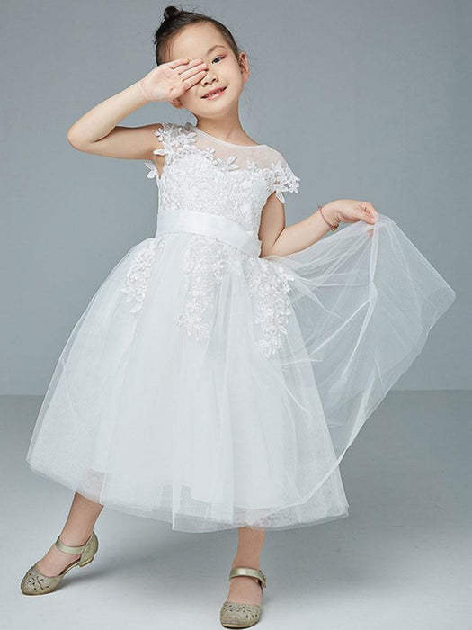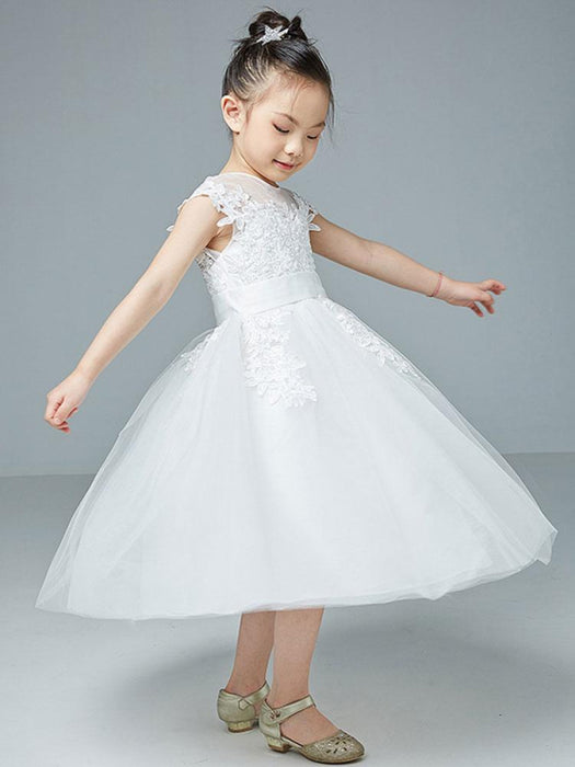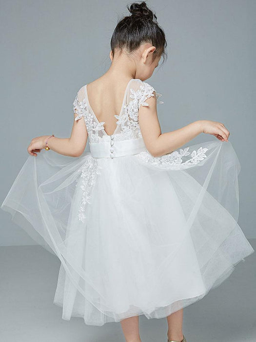 Sleeveless White Lace Tulle Flower Girl Dresses Knee Length Princess Silhouette Embroidered Kids Dresses
