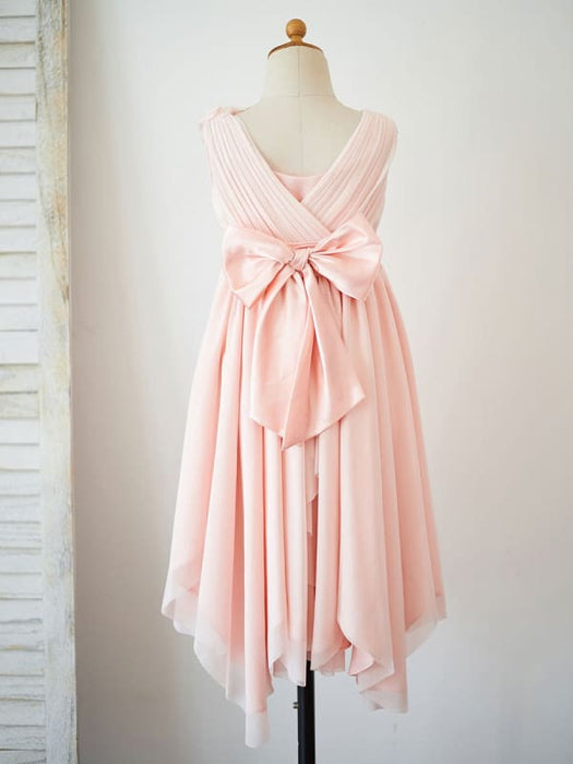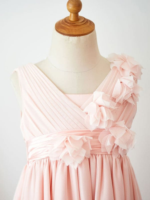 V-Neck Tulle Sleeveless Flower Girl Dresses Knee-Length Princess Silhouette Flowers Kids Party Dresses