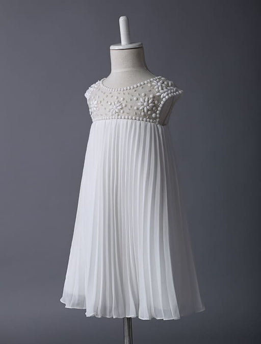White Flower Girl Dresses Short Princess Dress Jewel Neck Sleeveless Bows Kids Party Dresses