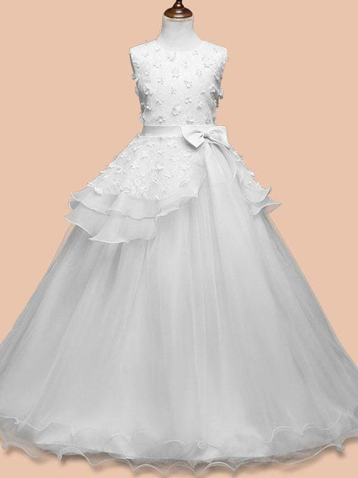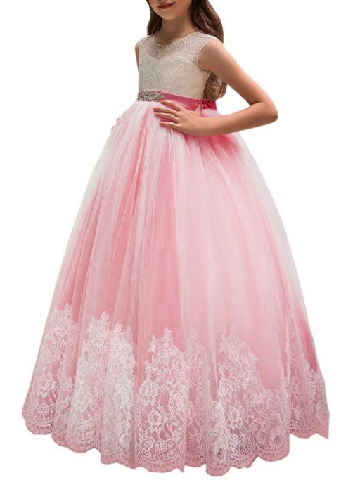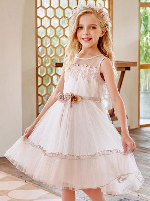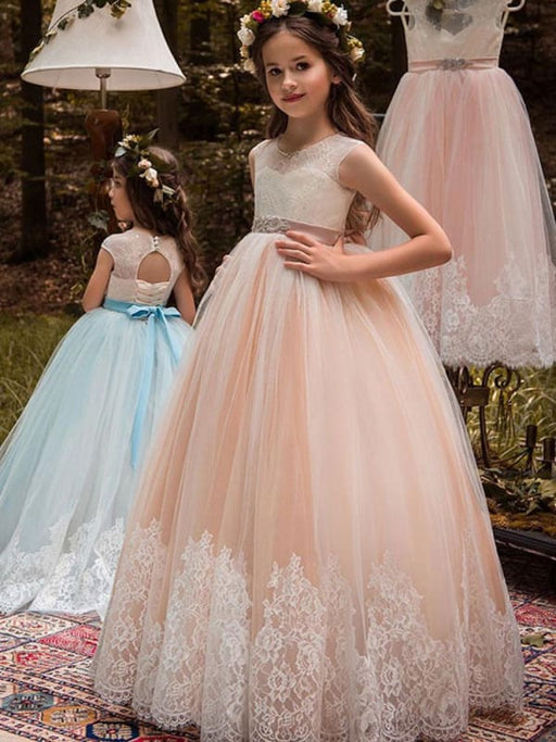 Gorgeous Tulle Lace Appliques Flower Girl Dresses Sleeveless Sash Formal Kids Dress
