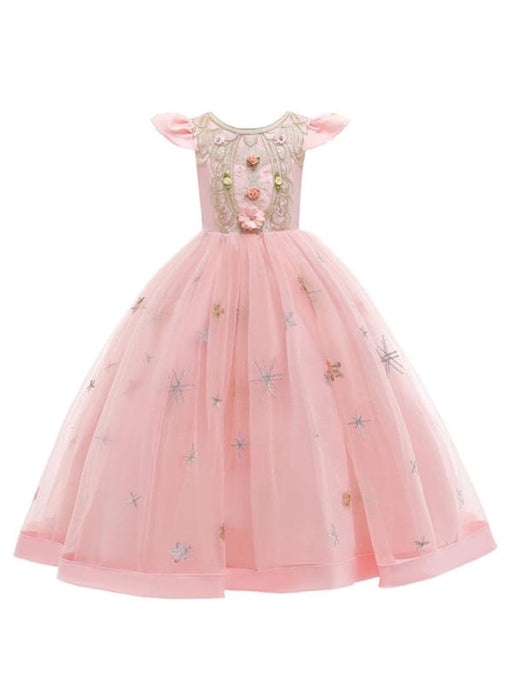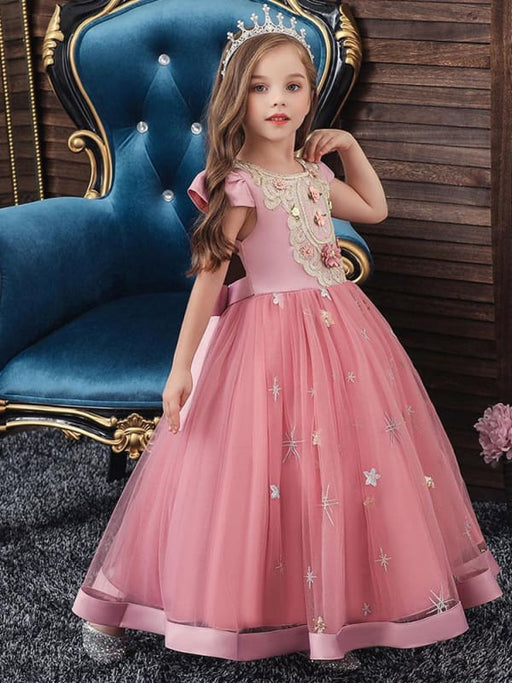 Tulle Lace Princess Flower Girl Dresses Short Sleeves Floor Length Silhouette Kids Formal Pageant Dresses