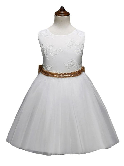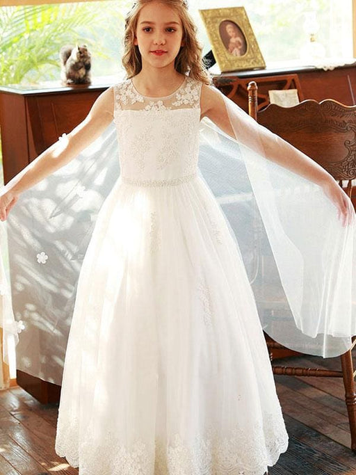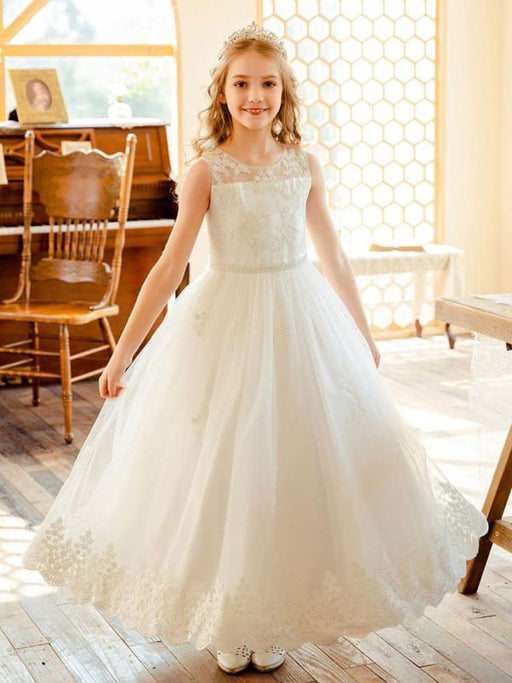 Jewel Neck Sleeveless White Flower Girl Dresses Lace Formal Kids Dresses