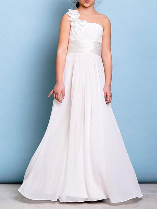 White Little Flower Girl Dresses A-Line V-Neck Tulle Flowers Kids Party Dresses
