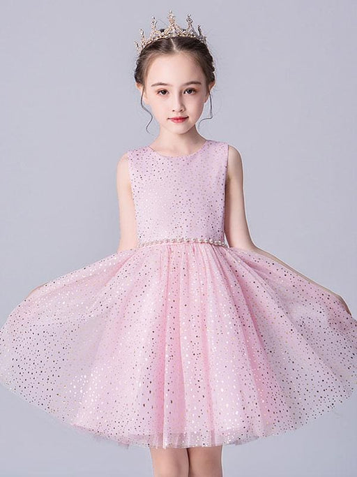 Pink Flower Girl Dresses Sparkly Sequins Sleeveless A-Line Tulle Kids Party Dresses