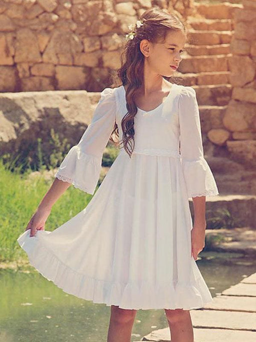 White V-Neck Flower Girl Dresses Long Sleeves Formal Kids Dresses