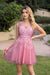 Burgundy Short Formal Gown Lace Applique V Neck Homecoming Dresses