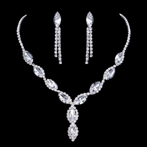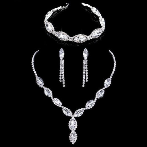 Chic Silver Crystal Necklace Earrings Bracelet Jewelry Sets | Bridelily