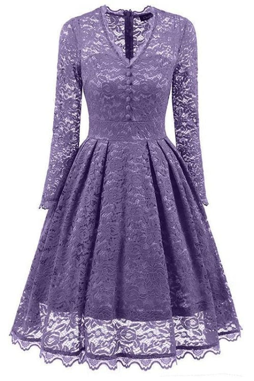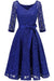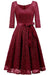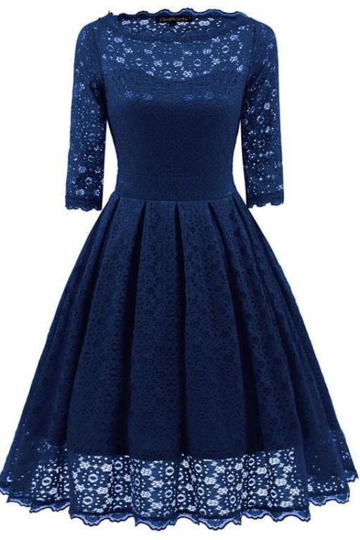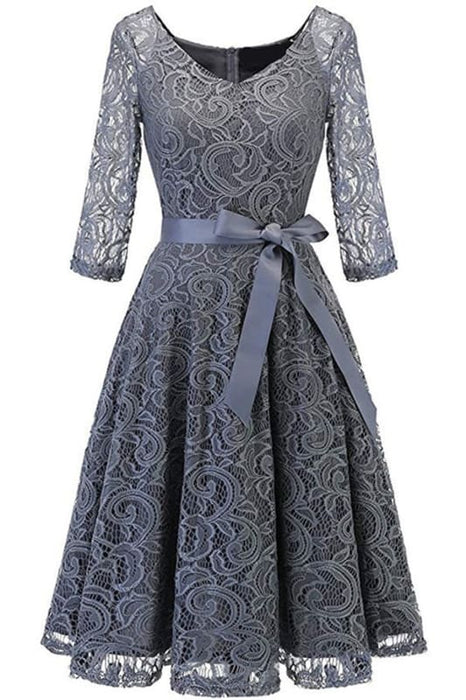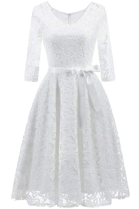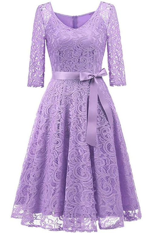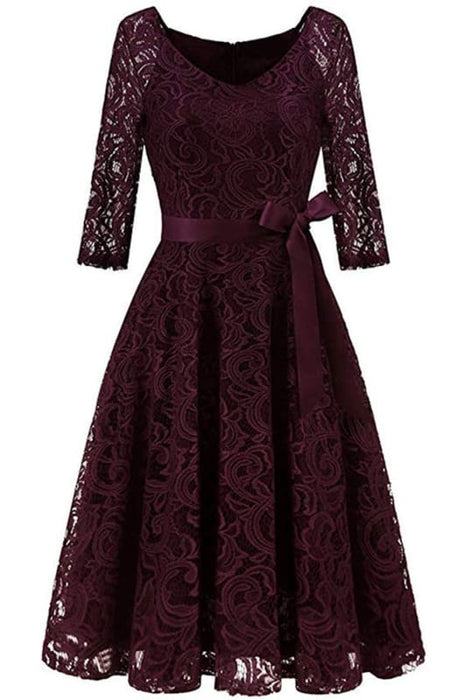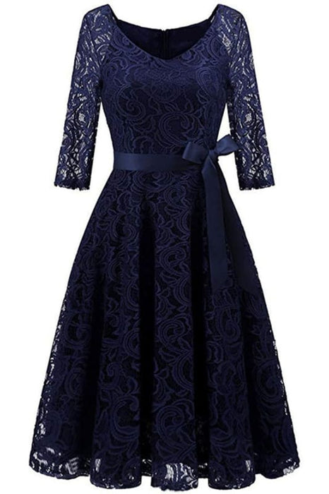 A| Bridelily Elegant V Neck Lace 3/4 Sleeve Guest Dresses Slim Waist Midi Dress
