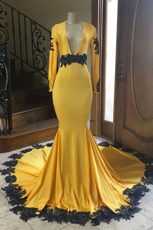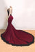 V-neck Open Back Appliques Burgundy Mermaid Prom Dress