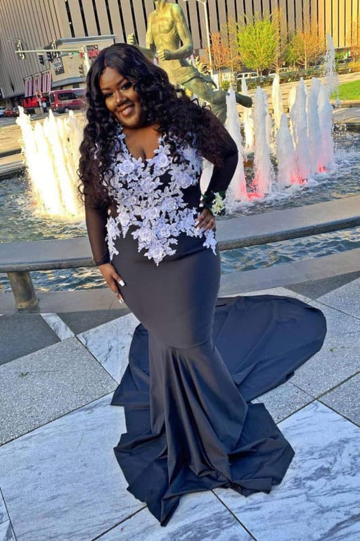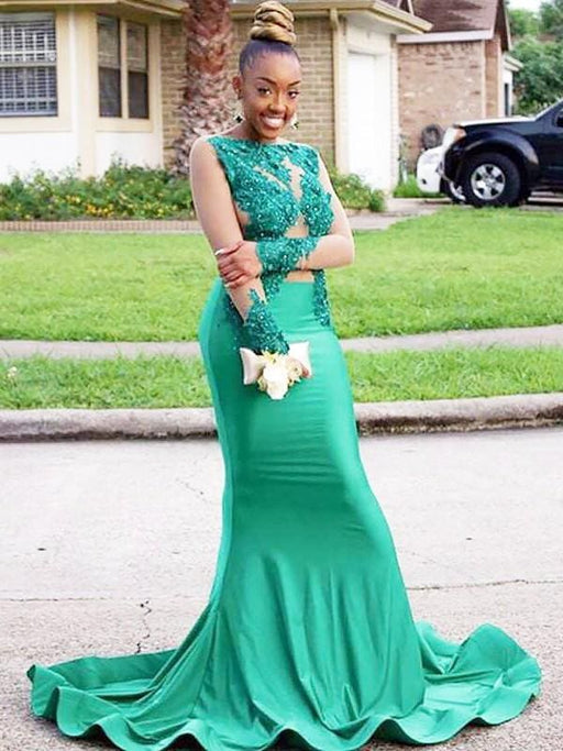 View full detailsThis sleeveless long mermaid evening dress features exquisite lace appliques that enhance its elegant silhouette. The fitted design flares graceful...