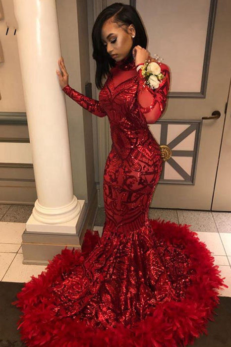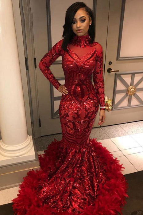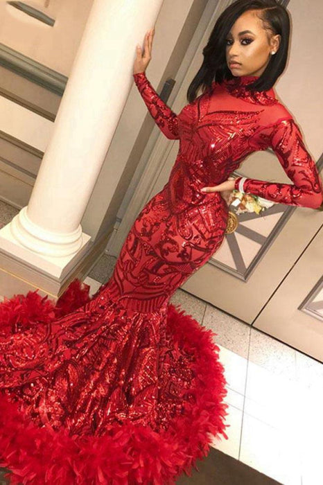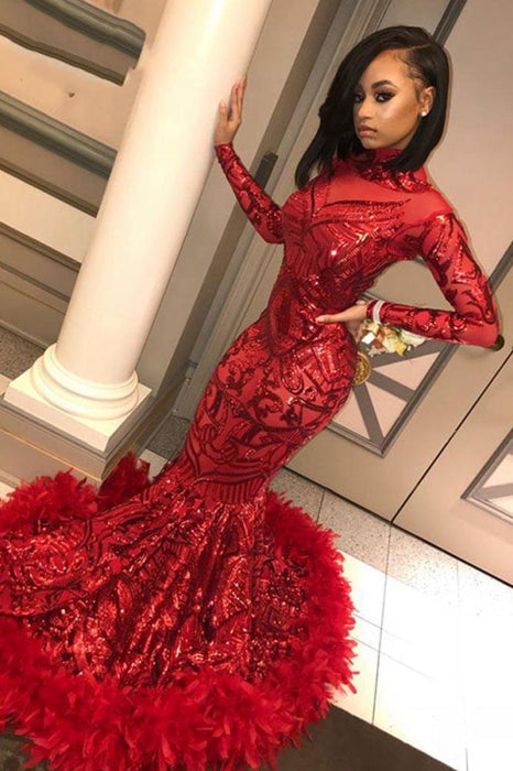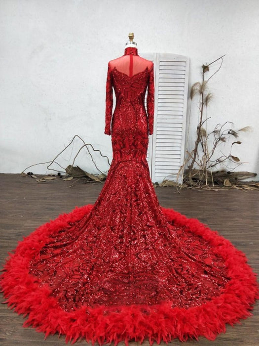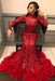 Sparkly Long Sleeve Sequin Mermaid Prom Dress Red Party Dress