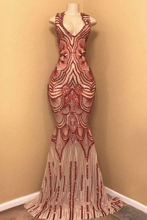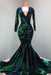 Sparkly Sequin Long Sleeve V-neck Mermaid Prom Dresses