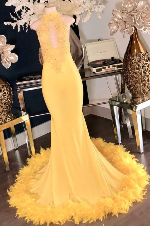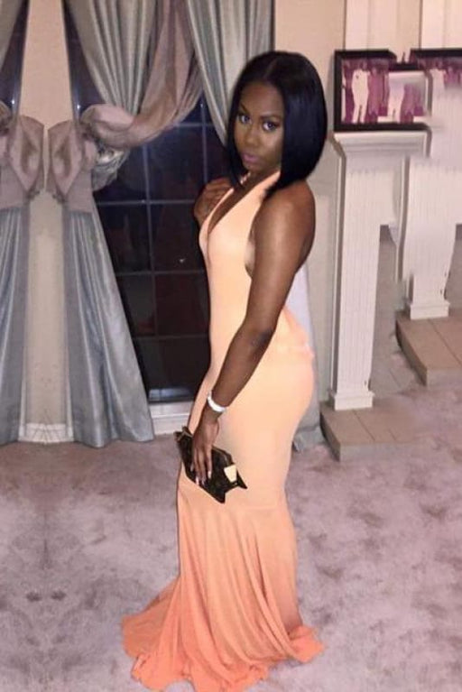 Romantic Halter Sleeveless Open Back Mermaid Prom Dresses