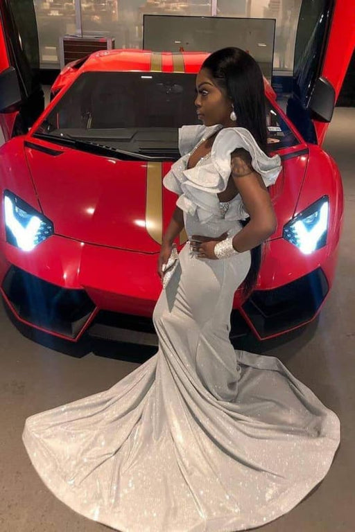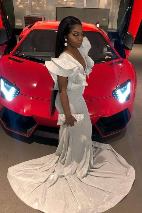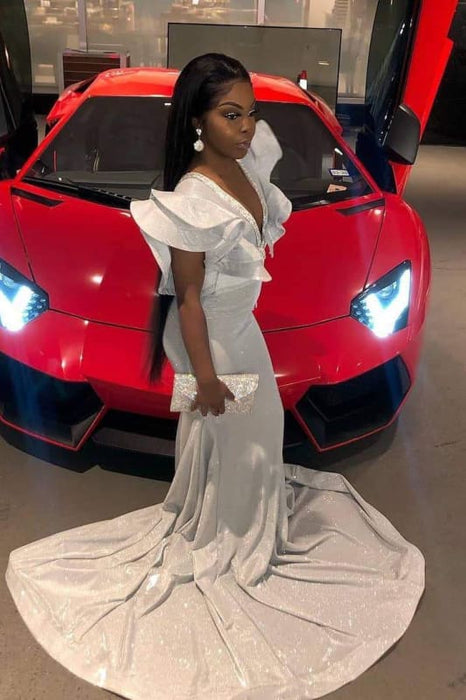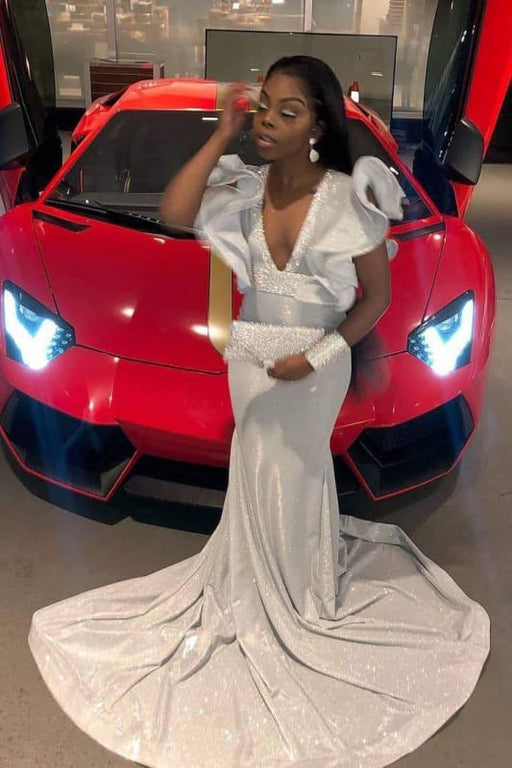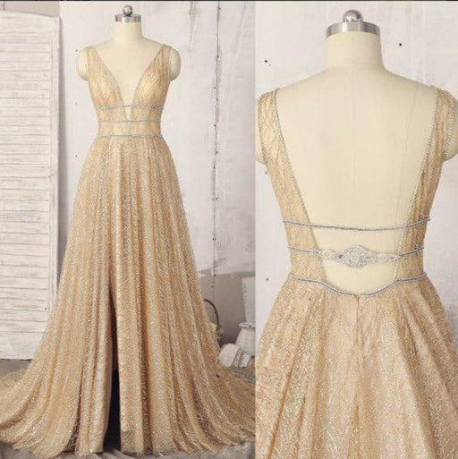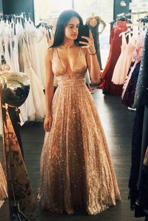 Sparkly Shiny V Neck Sleeveless Long Prom Dress