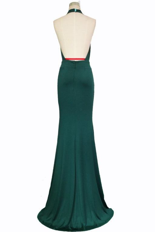 Sexy Halter Backless Rhinestone Sheath Prom Dress