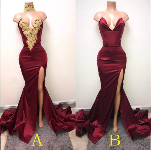 Key Features:1. Silhouette: Sheath2. Fabric: Satin3. Neckline: Strapless4. Hemline/Train: Floor length5. Sleeve Length: Sleeveless6. Waistline: Nat...