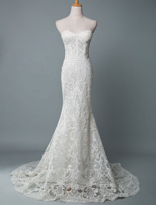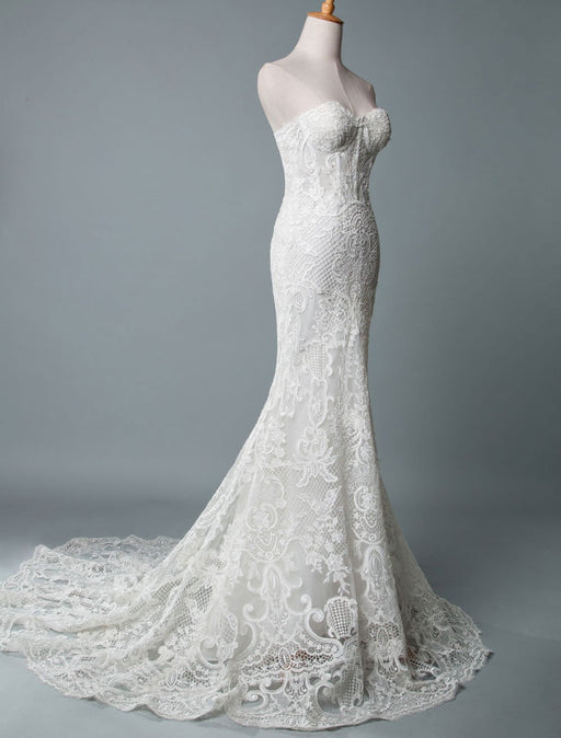 Sleeveless Lace Appliqued Mermaid Wedding Dress Beach Bridal Gowns With Train