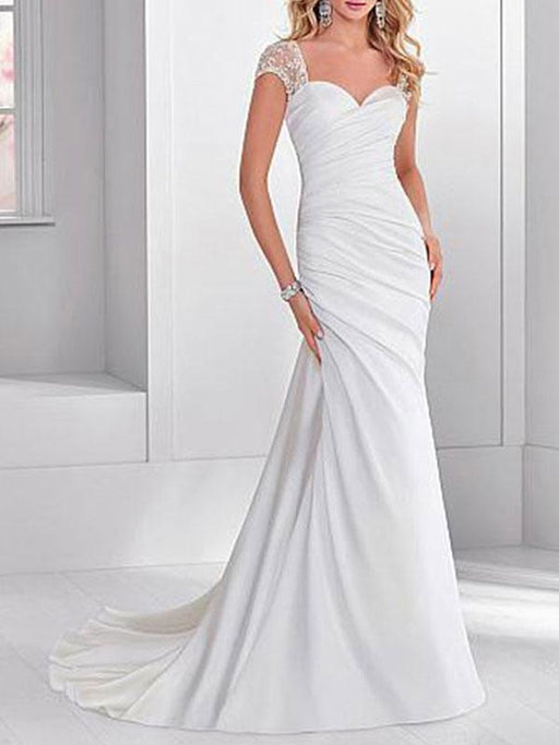 Wedding Dress Sweetheart Neck Sleeveless Pleated Court Train Bridal Gowns