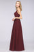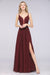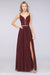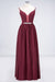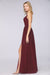 Sexy Deep V-Neck Burgundy Chiffon Bridesmaid Dress with Slit