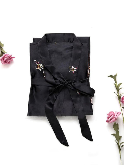 -The robe includes inner ties and matching outer sash.