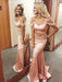 Bridelily Off Shoulder Satin Prom Dresses with Side Split