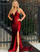 A| Spaghetti Strap Ruffles Satin Dresses side split