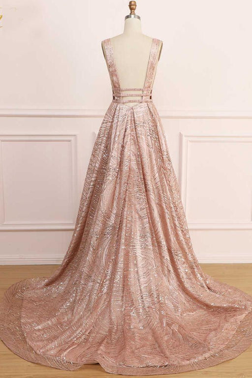 A Line V Neck Sleeves Sequins Plus Size Prom Dress