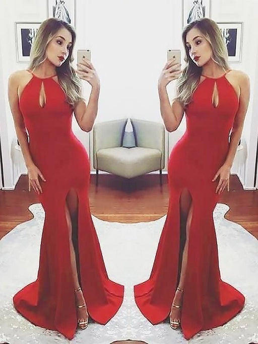 Sleeveless Ruffles Satin Royal Blue Prom Dresses Long