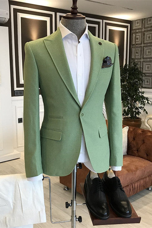 Light Green Peaked Lapel Simple Two Pieces Prom Suits One Buttom Business Suit