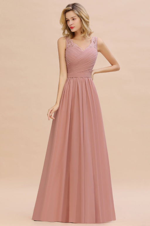 This knee-length pink lace dress features a flattering V-neckline and short sleeves for a stylish, comfortable fit. Its A-line silhouette provides ...