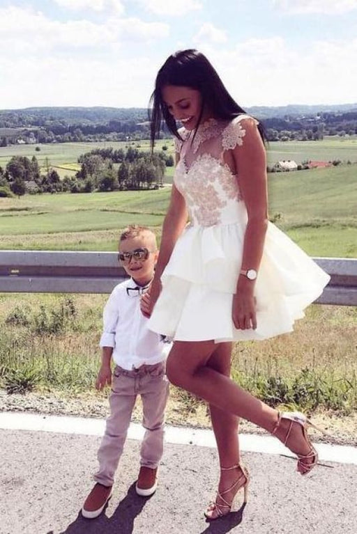 Chic Crew Neck Lace Tulle Short Homecoming Dress Sleeveless Appliques Mini Party Dress