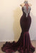 Dark Red Velvet Long Mermaid Sleeveless Sweep Train Prom Dresses