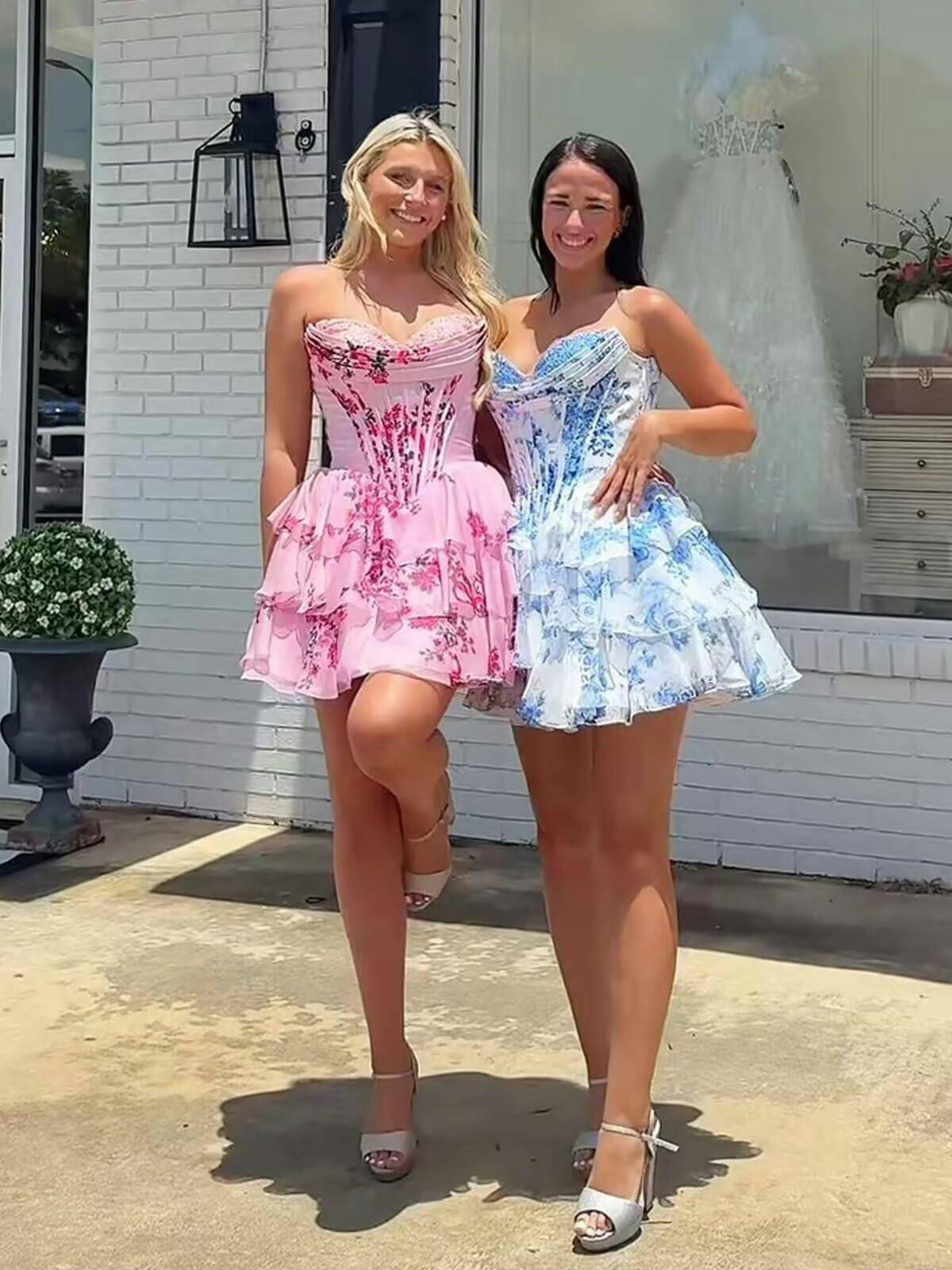 Make an unforgettable entrance at your homecoming, graduation, or special party with this stunning blue corset dress. Featuring a romantic sweetheart neckline and cascading tiered ruffles, this dress perfectly balances elegance and youthful charm. The structured corset bodice creates a flattering silhouette while the playful ruffle skirt adds movement and dimension with every step.
