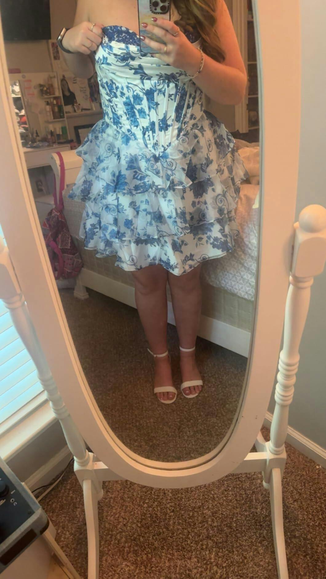 Have questions? Our customer service team is here to help! Feel free to contact us for sizing assistance, styling advice, or any other inquiries about this beautiful blue corset homecoming dress.