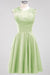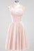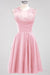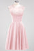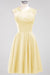 Elevate your bridal party’s style with these chiffon short bridesmaid dresses featuring a flattering round neckline. Delicately adorned with appliques, they offer a refined detail that enhances elegance without compromising comfort. The lightweight chiffon fabric ensures easy movement, making them ideal for celebrations that last all day. Perfectly designed to complement various wedding themes, these dresses combine classic sophistication with modern charm.