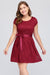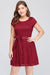 Plus Size Knee Length Jewel Burgundy Bridesmaid dress Lace with Short Sleeves