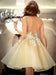 A-line V neck Backless Homecoming Dress with Flowers Appliqued Sleeveless Junior Dresses